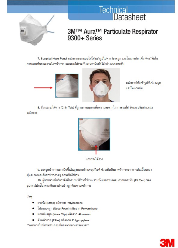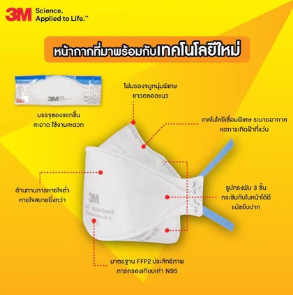 หน้ากากแบบพับ 3 ชิ้น ดีไซน์ลิขสิทธิ์เฉพาะของ 3เอ็ม เพื่อให้ความแนบกระชับและความสบายกับผู้สวมใส่แม้ขณะพูดหรือเคลื่อนไหวใบหน้า