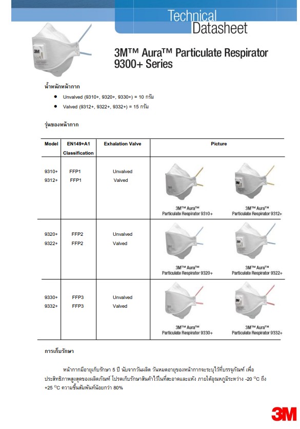 3M™ Aura™ 9320A+ หน้ากากกรองอนุภาค แบบพัก 3 ชิ้น, FFP2