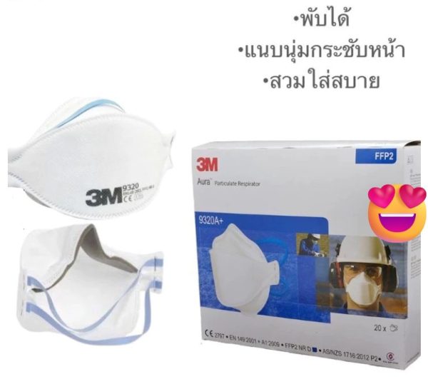 3M Aura 9320A FFP2 หน้ากากป้องกันฝุ่น PM2.5 แบบพับได้ สวมใส่สบาย (1 ชิ้น/ซอง)