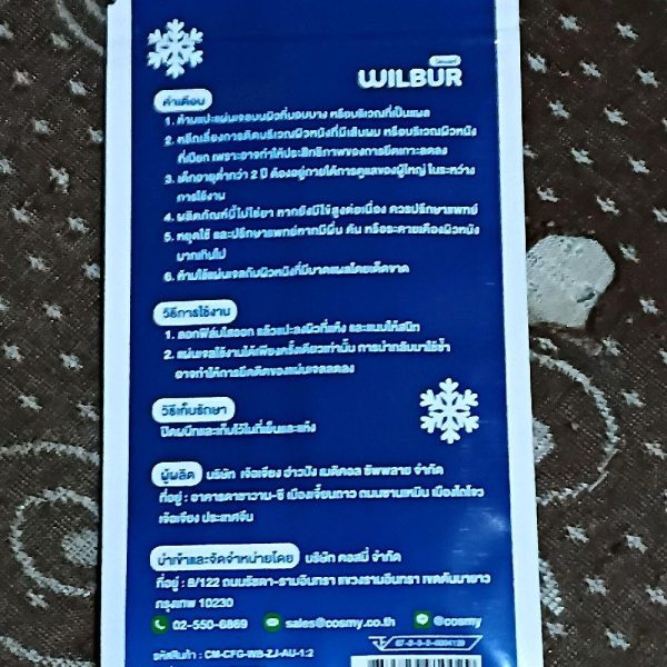 - วิธีใช้: ลอกฟิล์มใสออก นำด้านเจลวางลงบนผิวหนังที่แห้งและสะอาด
